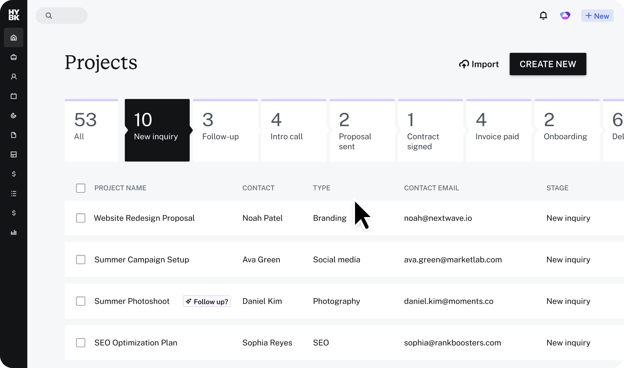 Stay on top of every client and project milestone from first hello to final delivery.