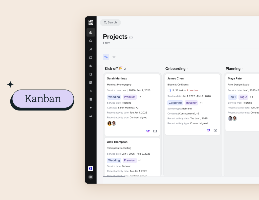 This view is especially helpful if you like to manage work visually or move projects through clear stages. It gives you a quick snapshot of your workload so you can stay organized and keep things moving without digging through individual projects.