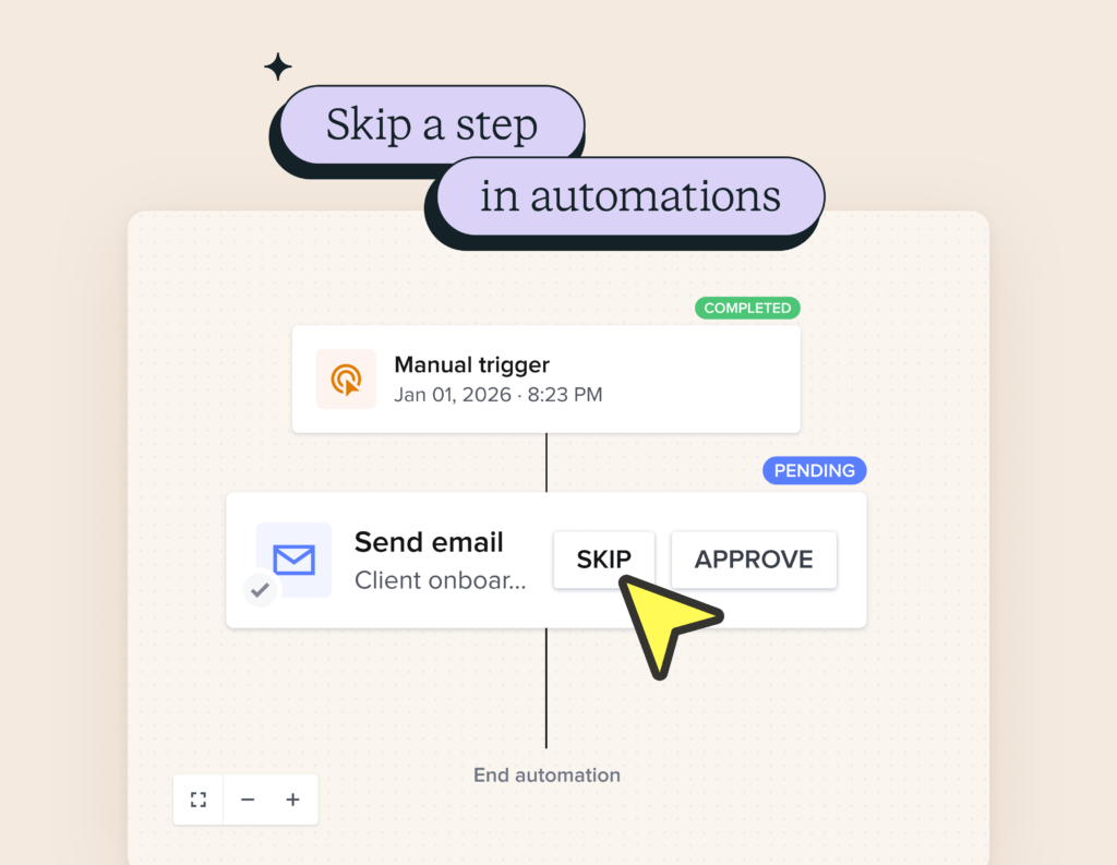 You can now skip individual steps in an automation without turning off the entire automation or rebuilding your flow. If a task is already done, a project changes direction, or a step no longer makes sense, you can move forward without breaking anything.