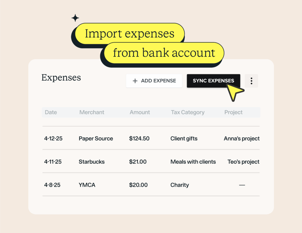 Say goodbye to manual entry. You can now link your business bank account and import business spending directly into HoneyBook expenses. HoneyBook expenses also directly syncs into Cashflow—making keeping your books up to date faster and easier, with less room for error and more time for the work that actually grows your business.