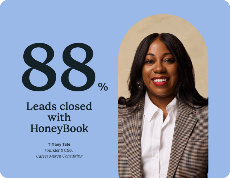 Hire a HoneyBook Pro to help you take your business to the next level. Vetted for their knowledge and expertise, a pro can help you with everything from streamlining your systems to polishing up your brand. Search the HoneyBook Pros Marketplace today!