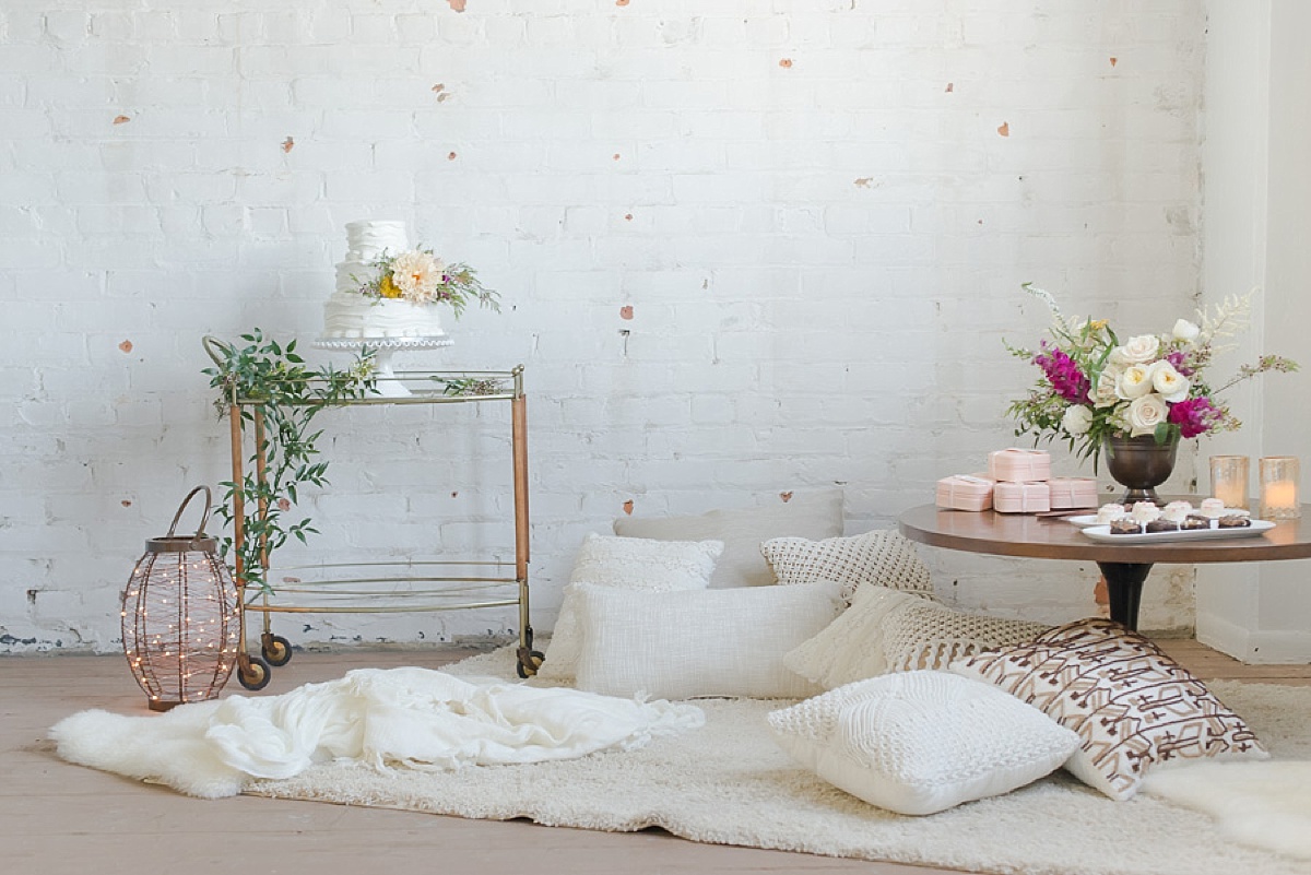 We took inspiration from bohemian and mid-century modern designs for our styled shoot.  Our goal was to create a delicate balance between wild and organic romance, and geometric, minimalist modernism.  A styled bridal shower celebrating a bohemian bride and her friends seemed like a perfect way to implement our design ideas.  We chose a neutral color palette of creams, ivory and blush, with warm wooden tones and metallic copper accents.  Modernly Events, Pixie Dust Events, and A Touch of Whimsy Events collaborated to pull together the final design and each of the styled elements.