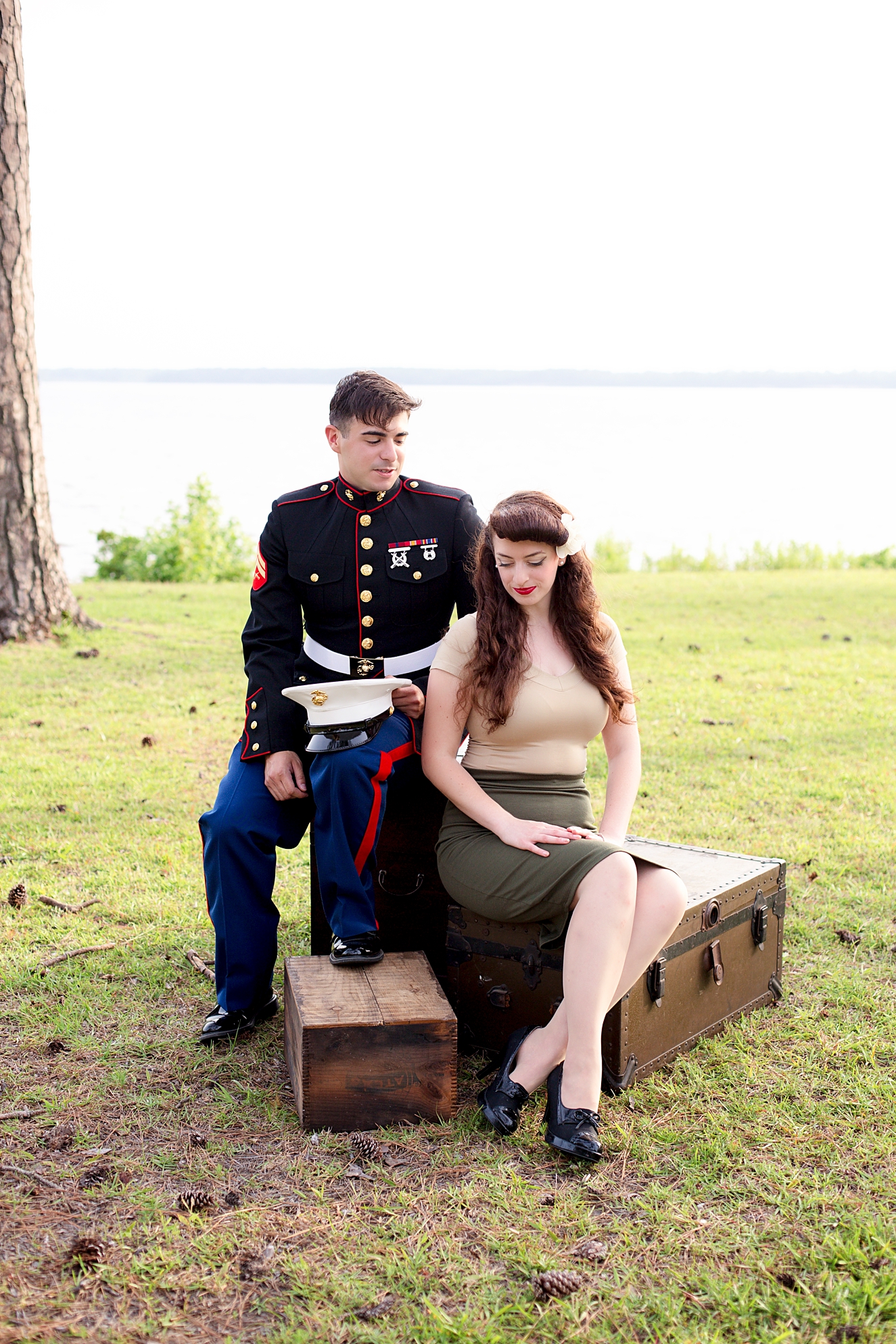 “Our Tuesdays Together Jacksonville NC group got together for a collaborative shoot honoring our community. I suggested doing a 1940s Military Theme in honor of Camp Lejeune which was founded in 1941. Aside from the Rising Tide, it is what links us all together. Whether members are married to an active duty Marine or Sailor, married to a retired Marine or Sailor, or civilians who just love working with these families, we are all somehow connected to our local military community.
