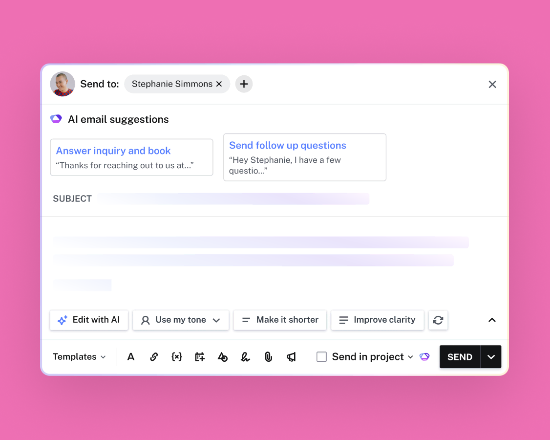 - Tracking project progress: AI keeps an eye on important milestones, deadlines, and next steps, surfacing reminders at the right time.
